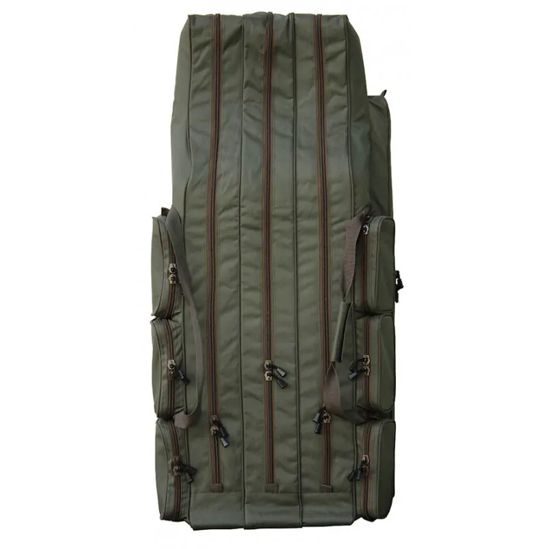 Tříkomorový obal na pruty pojme téměř vše potřebné na vaši rybářskou výpravu. Šířka komory je 11cm, výška 21cm se v 80cm zužuje na 11cm. To vytváří dostatečný prostor na naviják nasazený na prutu. Na jedné straně je dlouhá kapsa o rozměru 89x9x5cm na podběrák a nad ní jsou tři kapsy 20x10x5cm na drobnosti, nebo na krabičky Versus typu VS506, VS706 a VS806. Na druhé straně jsou tři kapsy o rozměru 20x20x5cm do kterých pasují krabičky typu VS3010NDM,VS3010ND a VS3010NS. Všude jsou použity velké pevné zipy s dvěma jezdci, které mají místo kovové rukojeti provázek s plastovým gripem. Obal je ušit z pevného Nylon Oxford materiálu, který je velmi pevný a odolný.odolný.